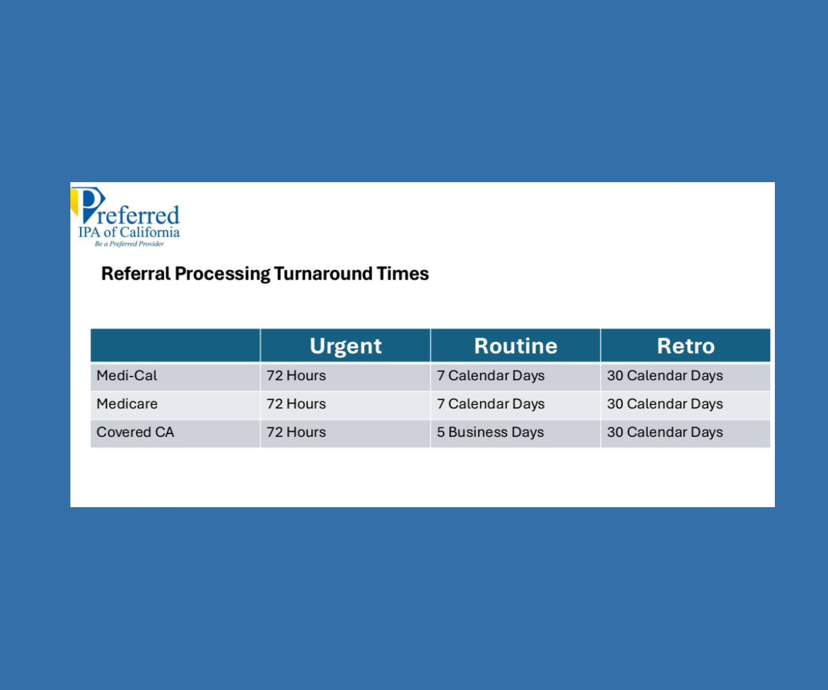 The current Direct Referral form is available on the Preferred IPA website.